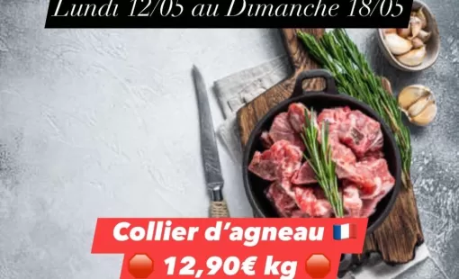 LE BOEUF TRICOLORE à La Londe-les-Maures vous propose en promotion cette semaine, DU LUNDI 12 Mai 2025 jusqu'au DIMANCHE 18 Mai 2025, LE COLLIER D’AGNEAU …